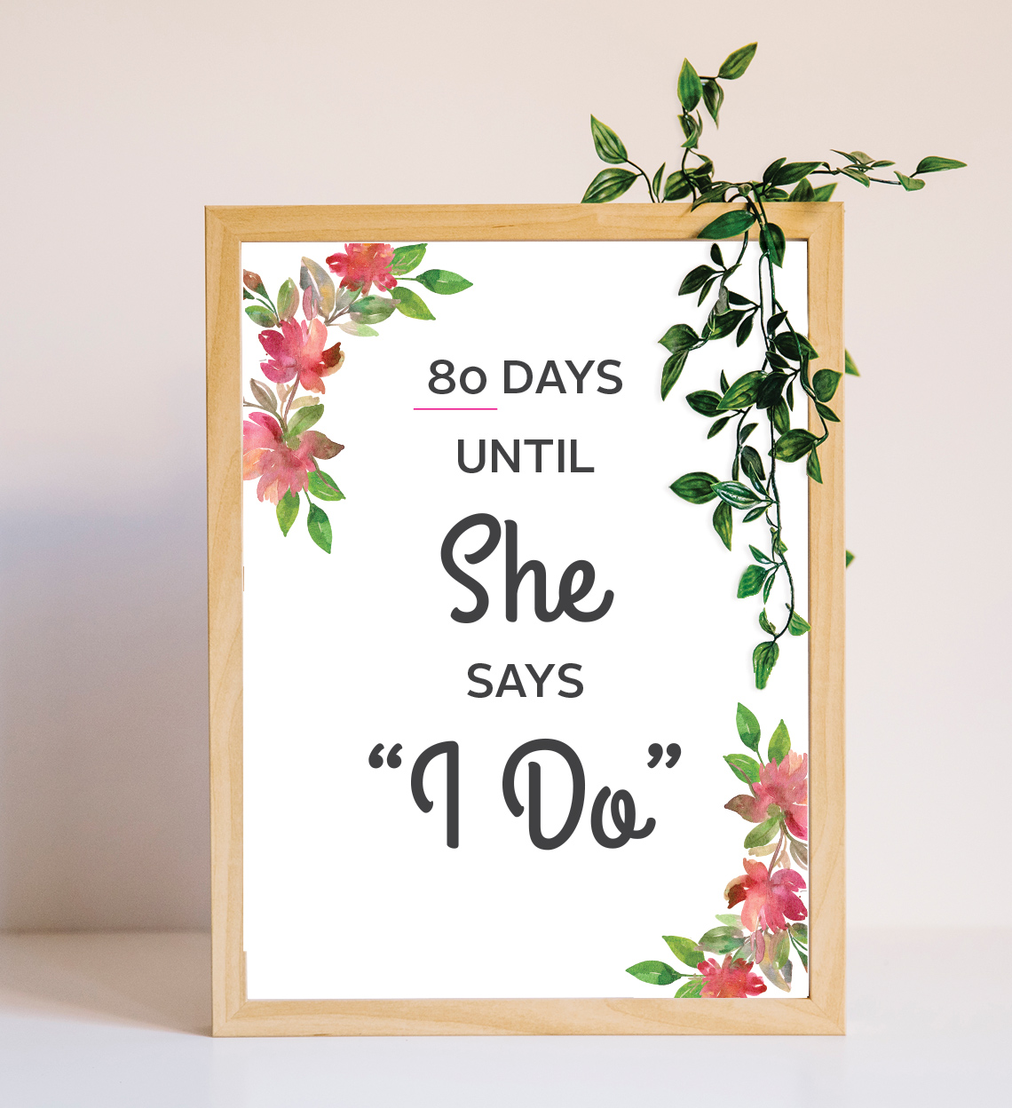 Informa a tus invitados cuantos días faltan para dar el Sí, ¡Qué emoción! Una bonita forma de expresar lo feliz y emocionada que te encuentras para el matrimonio. El banner se puede usar de forma decorativa en la despedida de soltera.