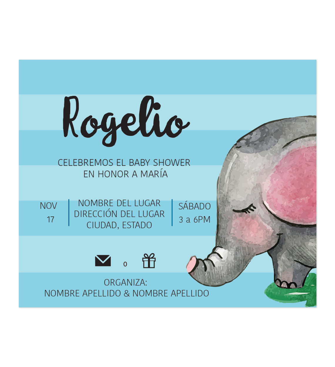 Diseño Invitación Baby Shower Toti. Los elefantes para baby shower nunca pasan de moda.