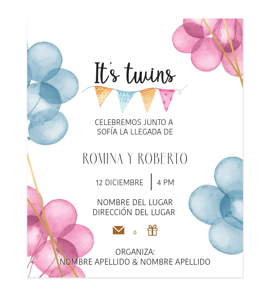 Invitación Baby Shower Cuates Globos Combinados.