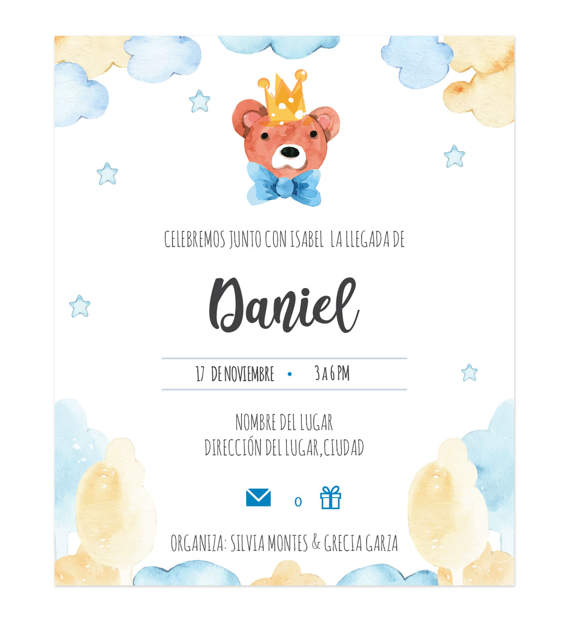 Invitación Baby Shower Rey Oso.