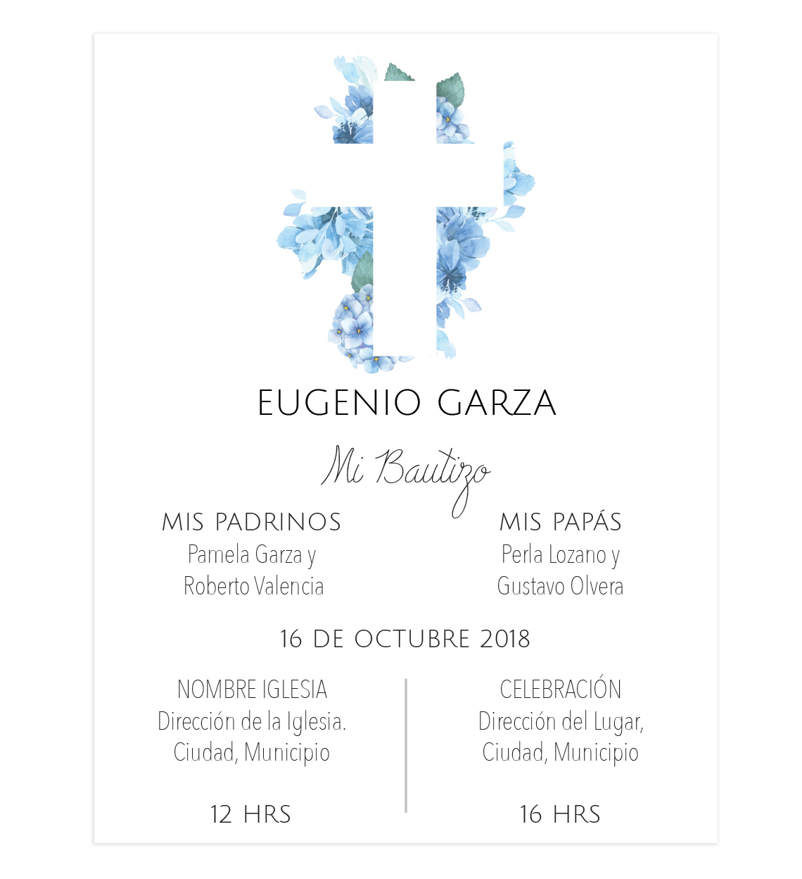 Medida Invitación individual: 10 cm de ancho por 13 cm de alto.
