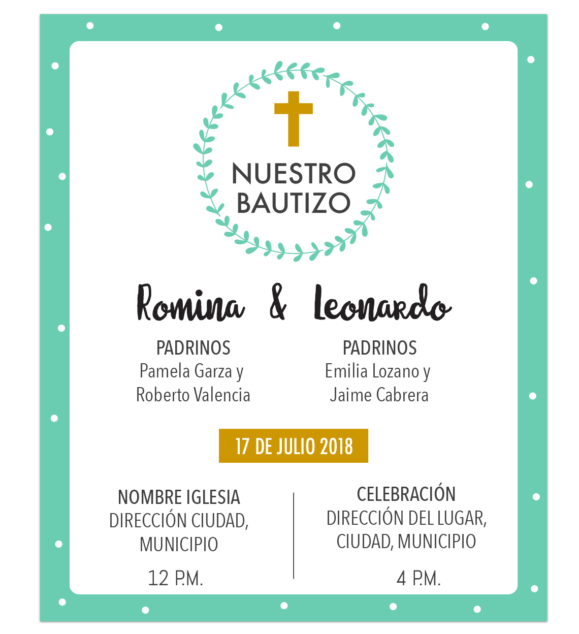 Medida Invitación individual: 10 cm de ancho por 12 cm de alto.