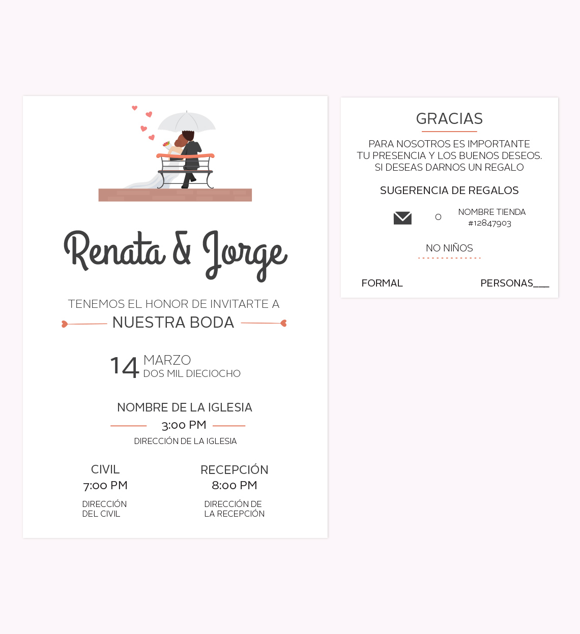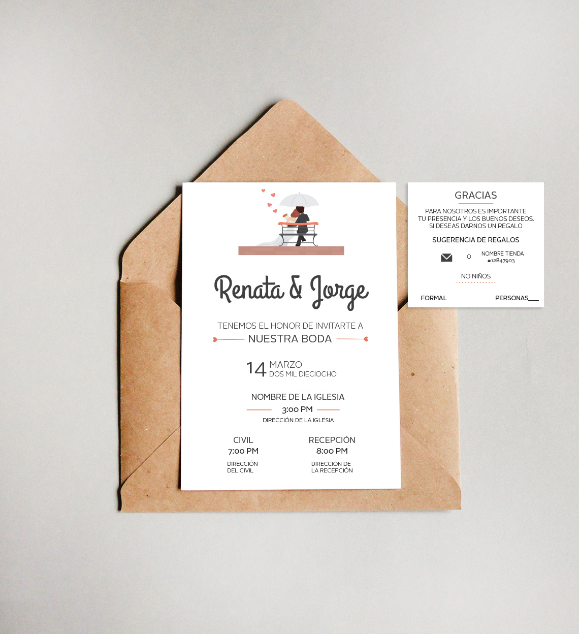 1 archivo digital en formato PDF con 2 o más invitaciones de boda acomodadas en una hoja tamaño doble carta (tabloide).