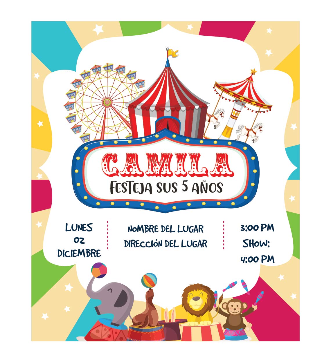 Invitación Cumpleaños Circo Colores