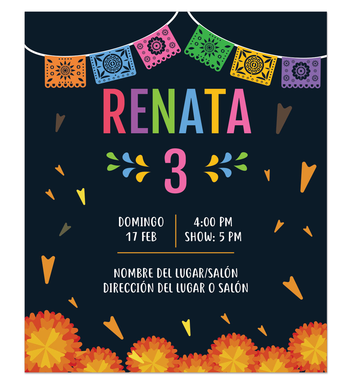 Invitación Cumpleaños Coco Flor lista para personalizar.