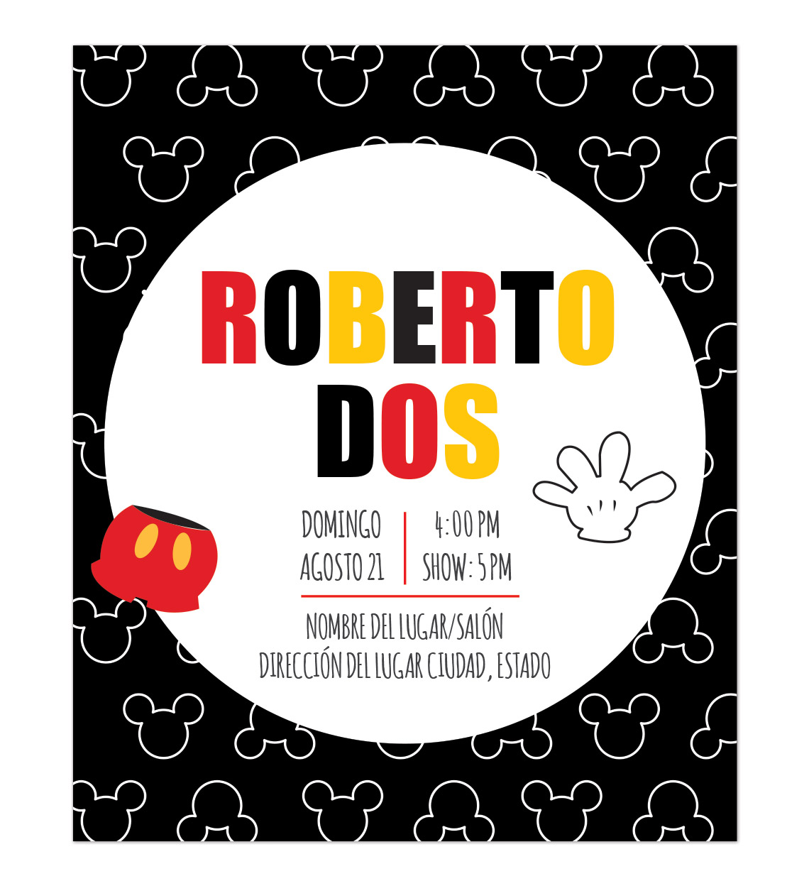 Invitación Cumpleaños Mickey Fondo lista para personalizar. Nuestra versión del ratoncito a llegado a Oh! Yupi Yei.