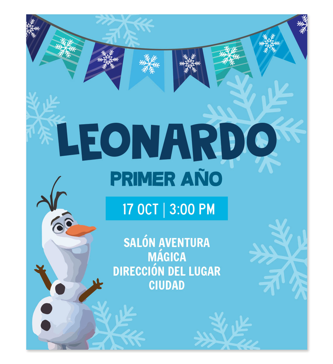 Invitación Cumpleaños Olaf . Diseño de invitación para cumpleaños. Tu mismo podrás imprimir las invitaciones que realmente necesites.