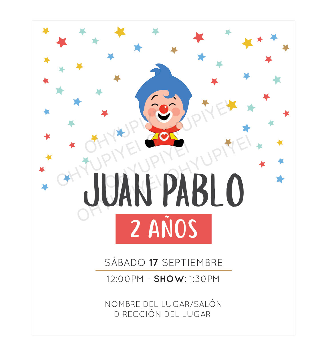 - Textos 100% personalizables: nombre, fecha, hora, lugar y más.