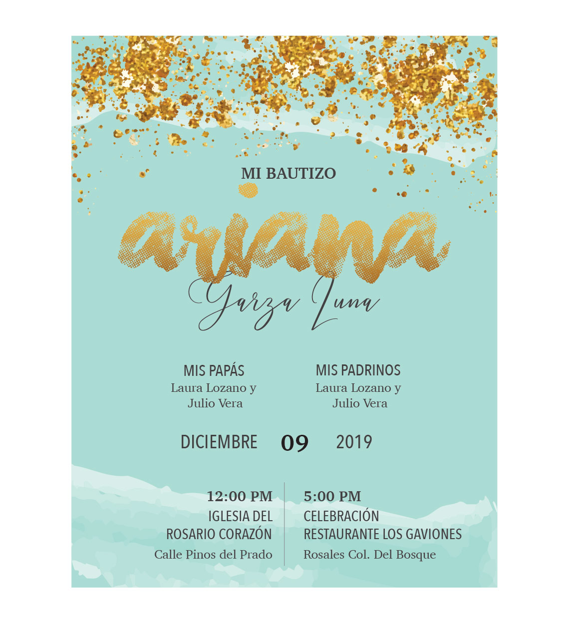 Medida Invitación individual: 10 cm de ancho por 13 cm de alto.