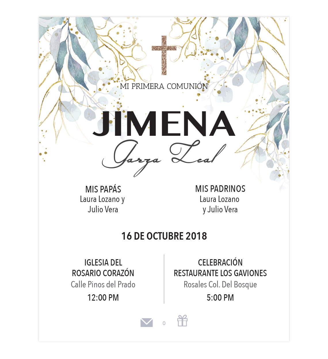 Invitación Primera Comunión Cascada Gris