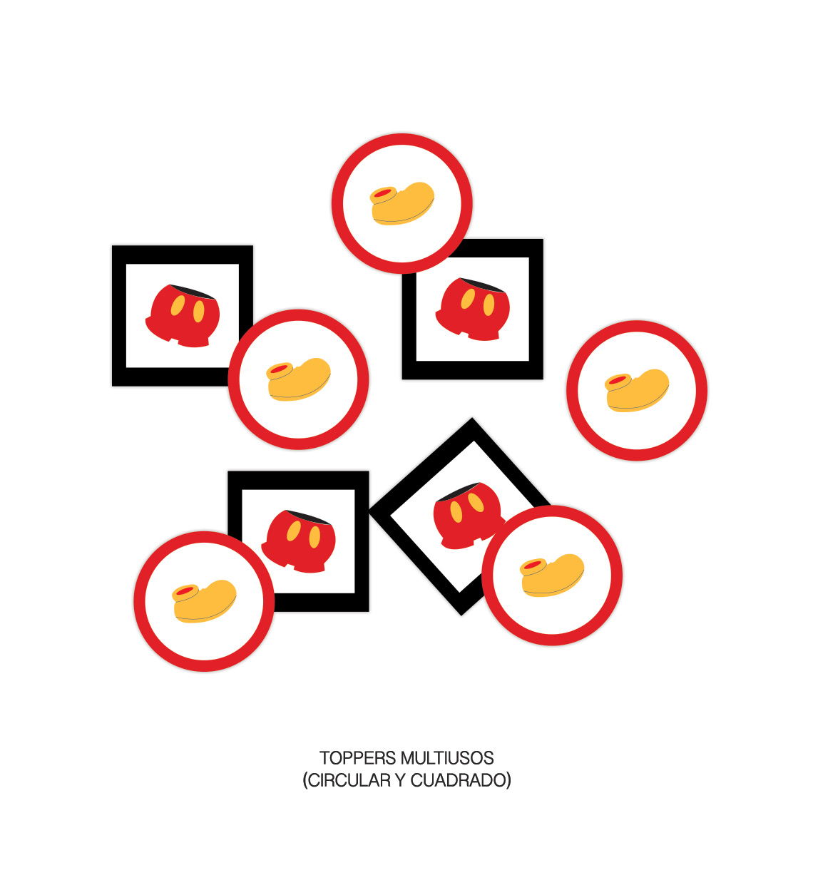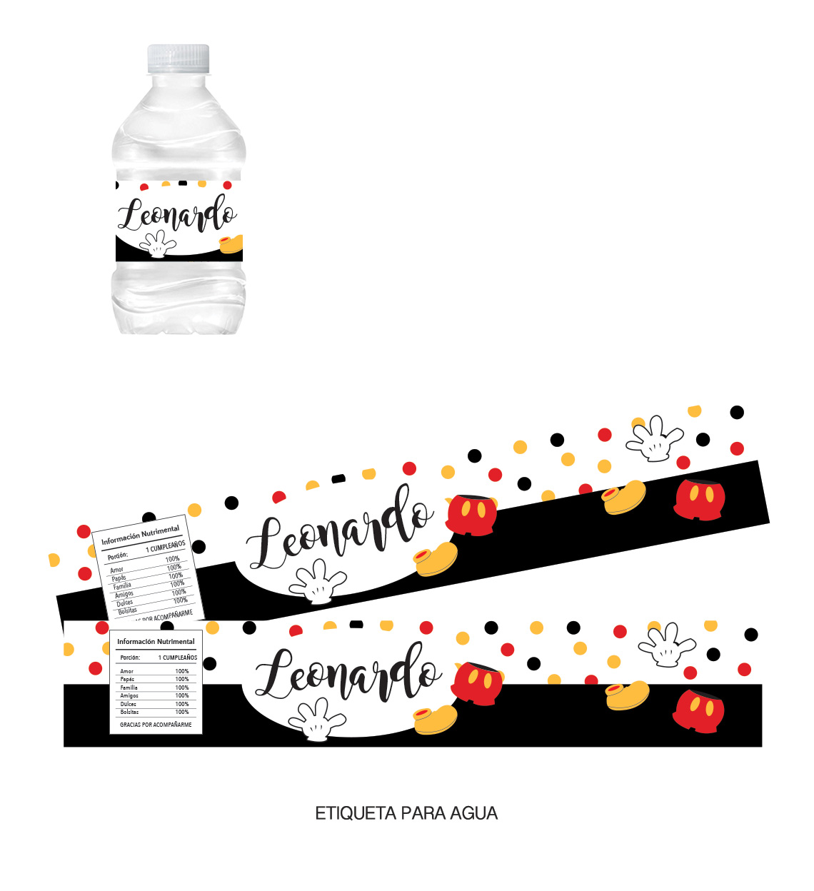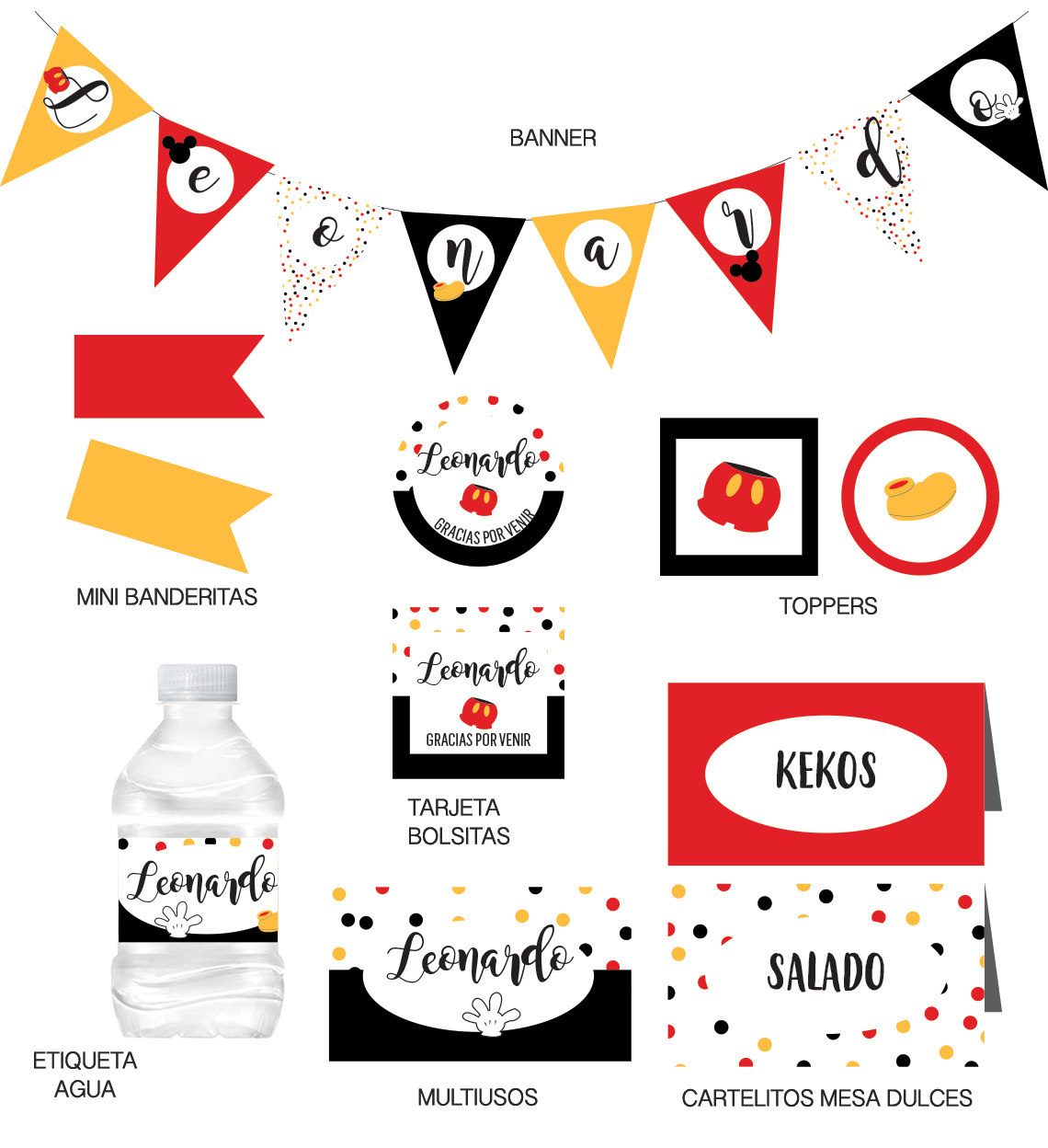 Kit Infantil Mickey Confeti listo para complementar la fiesta. Llena los datos de tu evento y nosotros personalizamos los diseños. Las impresiones van por tu cuenta.