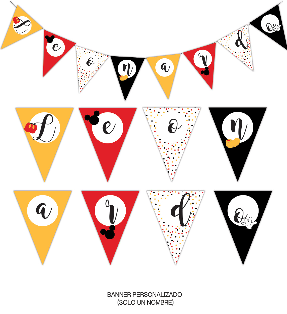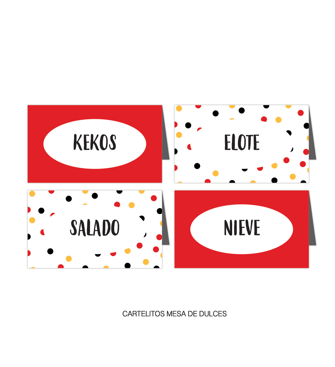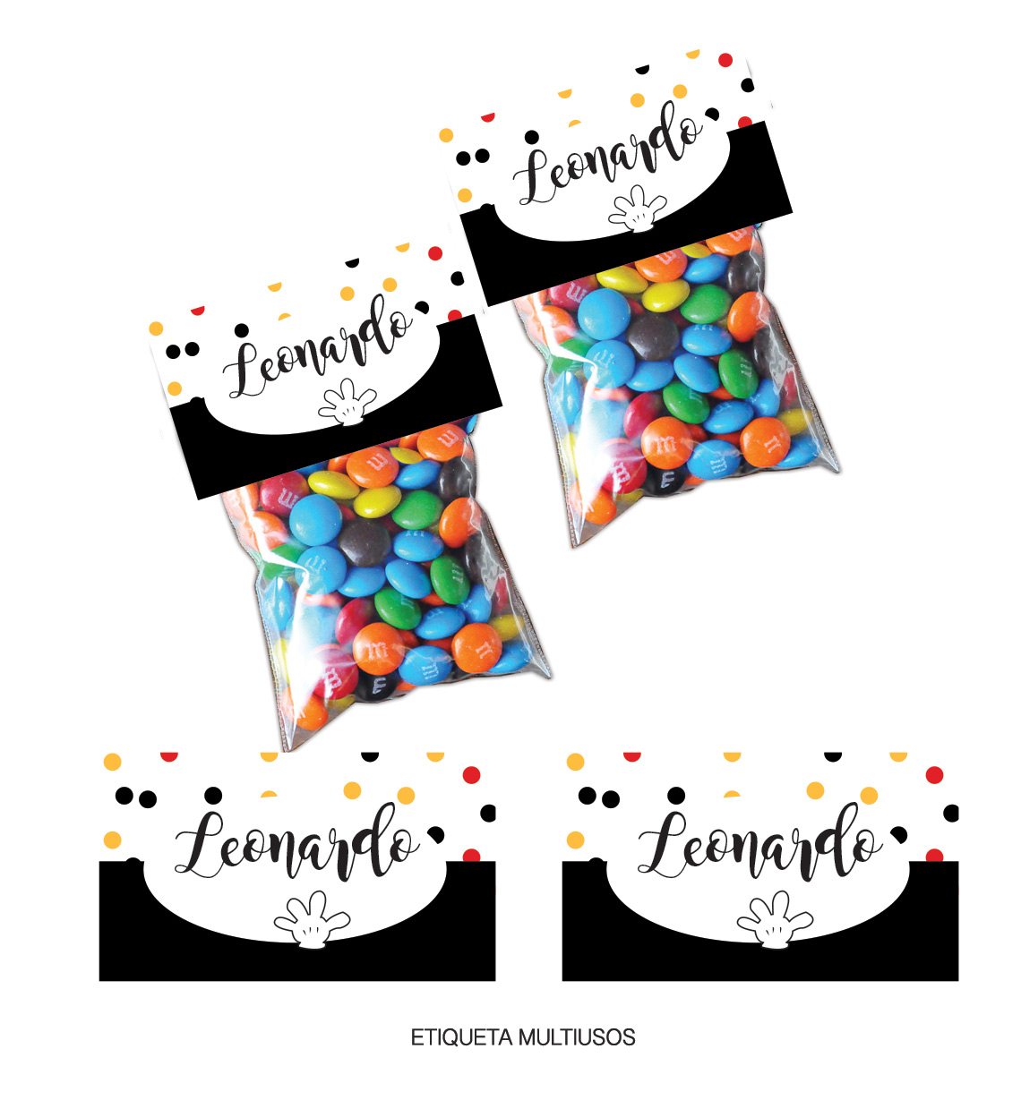 Kit Infantil Mickey Confeti listo para complementar la fiesta. Llena los datos de tu evento y nosotros personalizamos los diseños. Las impresiones van por tu cuenta.