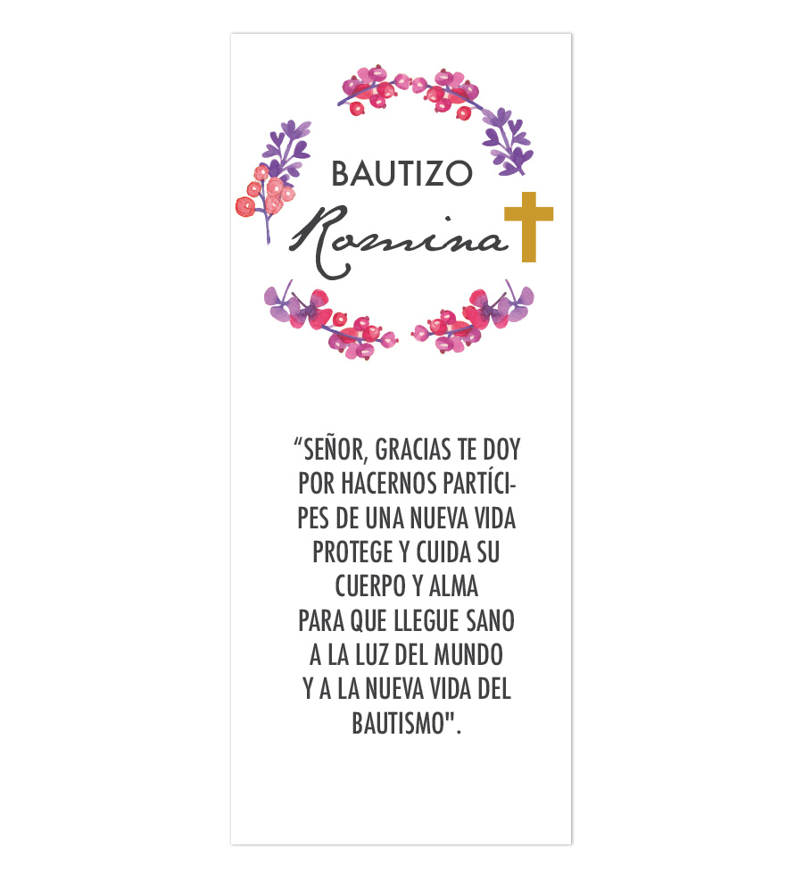 Oración Flores Bautizo. Diseño digital. Regala una oración a los asistentes al bautizo e invítalos a rezar por él bautizado.
