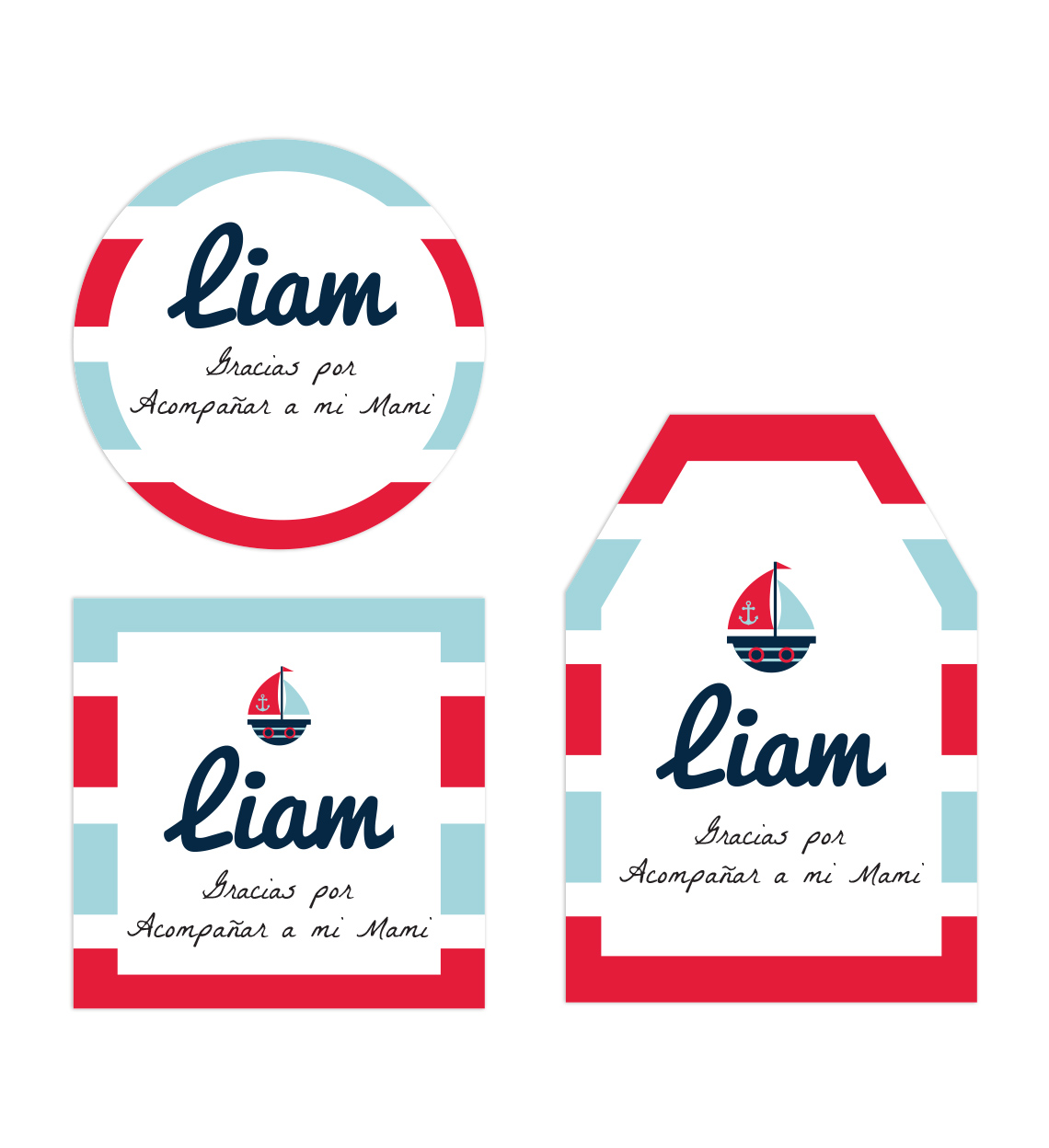 Tarjeta Agradecimiento Baby Shower Barco Rayas. Agrega una tarjeta de agradecimiento al detallito que tienes para tus invitados. Tu eliges el diseño y el tamaño que necesites. Se puede usar como sticker o perforando el centro, dale el uso que quieras.