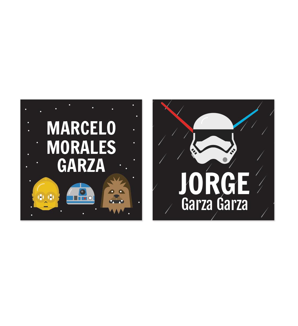 Tarjetas para Regalos Star Wars. Agregamos el nombre de tu hijo, sobrino, nieto, etc. para que entregue su tarjeta en las piñatas de sus amiguitos.